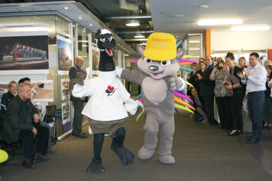 April 30, 2014 - Mascots for TORONTO 2015 and Commonwealth Games Canada had some fun at a Toronto stop for the Glasgow 2014 Queen’s Baton Relay. The mascots were joined by top athletes, cheering fans, Saäd Rafi, CEO of TO2015, as well as Michael Chan, Minister Responsible for the Pan Am/Parapan Am Games.
